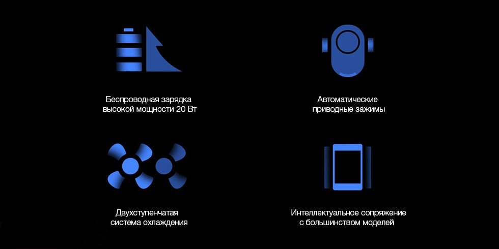Вам больше не придется отвлекаться от вождения на выполнение сложных действий для подключения смартфона к зарядному устройству. Чтобы начать зарядку, достаточно просто поднести к нему смартфон - специальные зажимы автоматически раздвинутся, адаптируясь под любую модель телефона шириной до 81.5 мм, включая Xiaomi Mi 9 и iPhone XS Max и тут же сдвинутся, надежно фиксируя Ваш смартфон. Быстрая беспроводная зарядка стала еще удобнее.