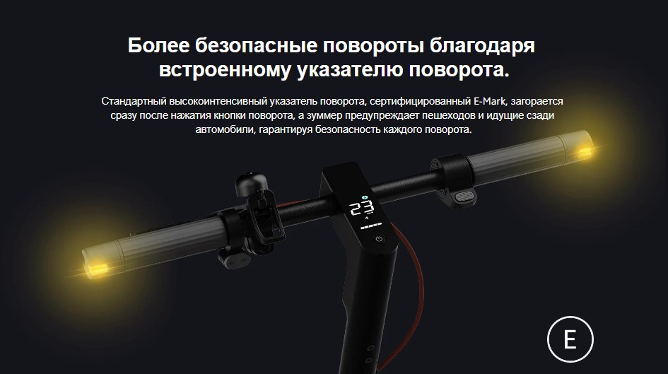 Задний фонарь автоматически включается при включении фар. Яркий задний фонарь эффективно предупреждает пешеходов и транспортные средства, следующие за вами, при торможении. Вы также можете включить задний фонарь в приложении Mi Home/Xiaomi Home для повышения безопасности.