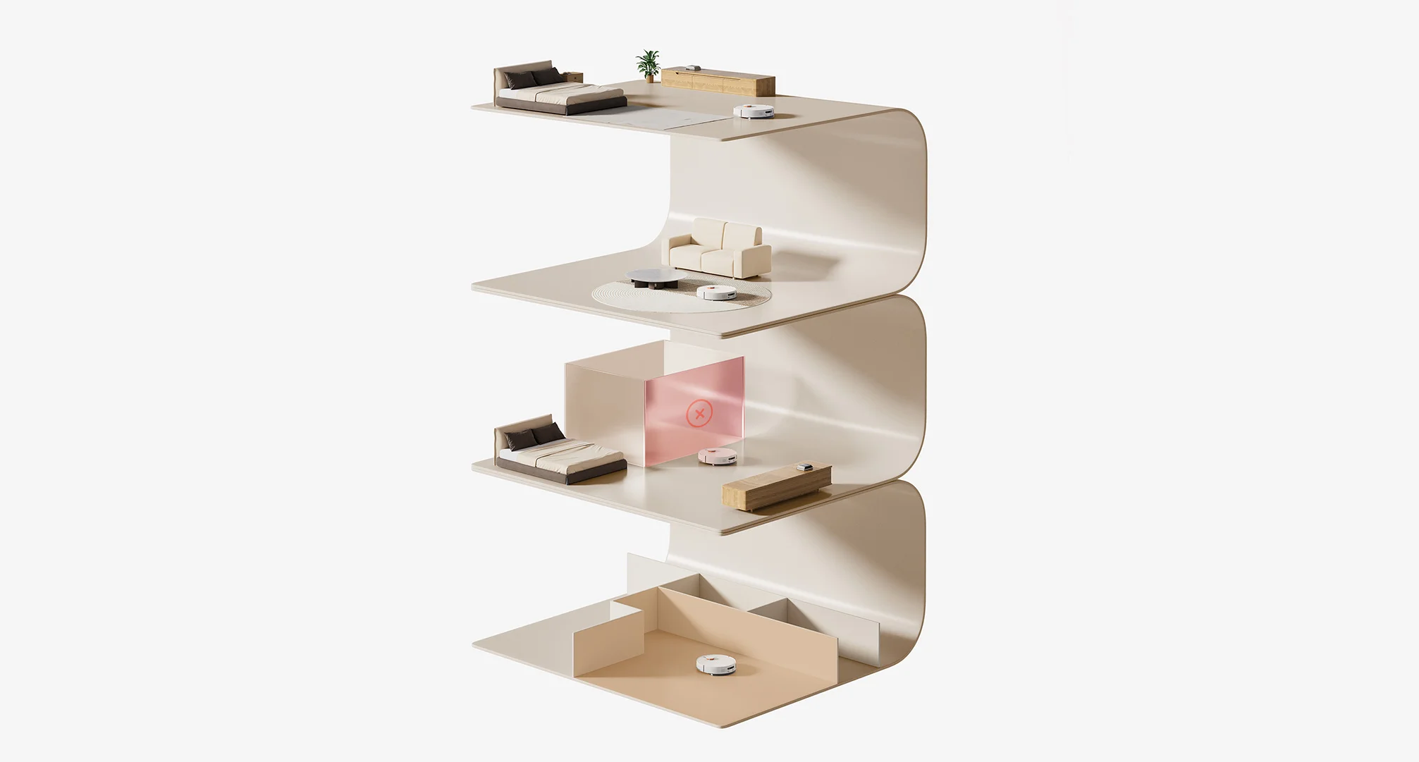 Лазерный сканер быстро создаёт карту помещения с точным зонированием. В приложении Xiaomi Home доступна 3D-визуализация, сохранение карт нескольких этажей и настройка виртуальных стен, зон уборки или запрета.