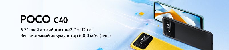 Новинка Poco C40 уже доступна для заказа. 6,71 - дюймовый дисплей Dot Drop. Быстрый восьмиядерный процессор. Аккумулятор емкостью 6000 мАч и поддержка быстрой зарядки мощностью 18 Вт.